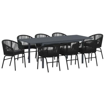 Garten Essgruppe 9 pcs Schwarz Poly-Rattan