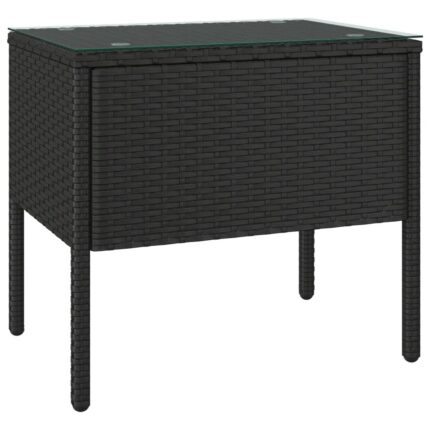 Beistelltisch Schwarz 53x37x48 cm Poly Rattan und Hartglas