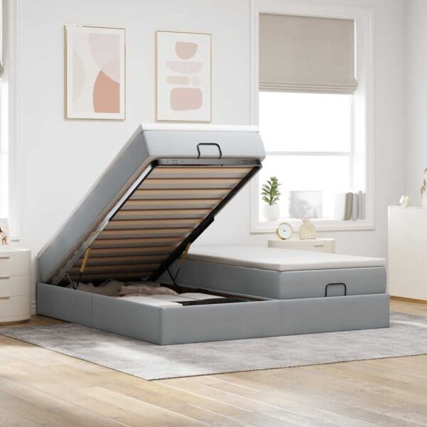 Ottoman-Bett mit Matratzen Hellgrau 160×200 cm Stoff