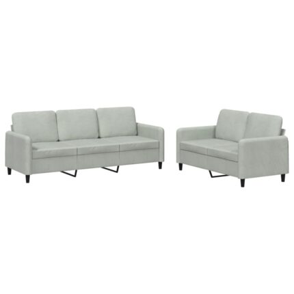 2-teiliges Sofa-Set mit Kissen, hellgrauer Stoff