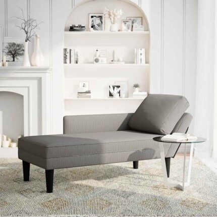 Chaiselongue mit Kissen Hellgrau Cordstoff