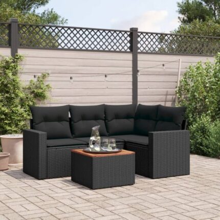 5-tlg. Garten-Sofagarnitur mit Kissen Schwarz Poly Rattan