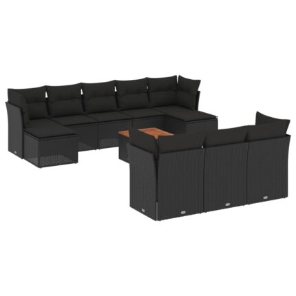 11-tlg. Garten-Sofagarnitur mit Kissen Schwarz Poly Rattan