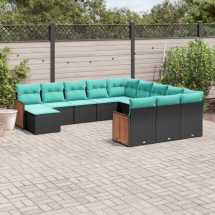 12-teiliges Gartensofa-Set mit Kissen, schwarzes Polyrattan
