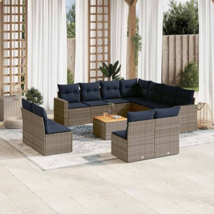 12-tlg. Garten-Sofagarnitur mit Kissen Grau Poly Rattan