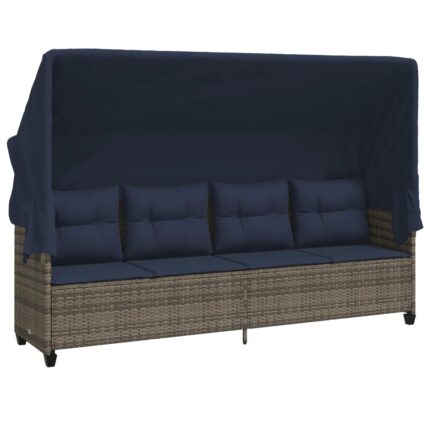 Sonnenliege mit Dach und Kissen Grau Poly Rattan
