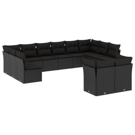 12-tlg. Garten-Sofagarnitur mit Kissen Schwarz Poly Rattan