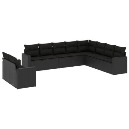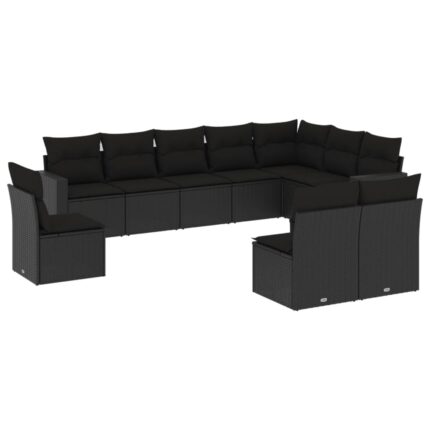 10-tlg. Garten-Sofagarnitur mit Kissen Schwarz Poly Rattan