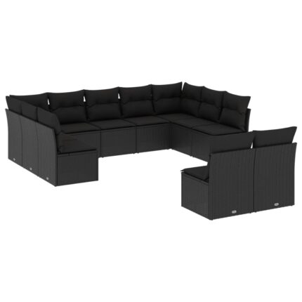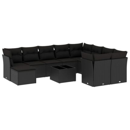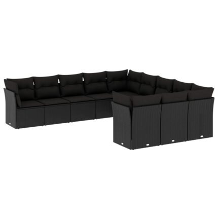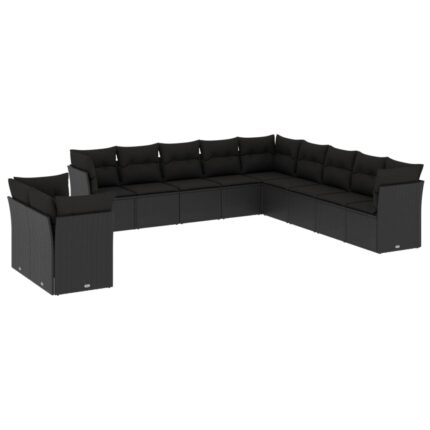 11-tlg. Garten-Sofagarnitur mit Kissen Schwarz Poly Rattan