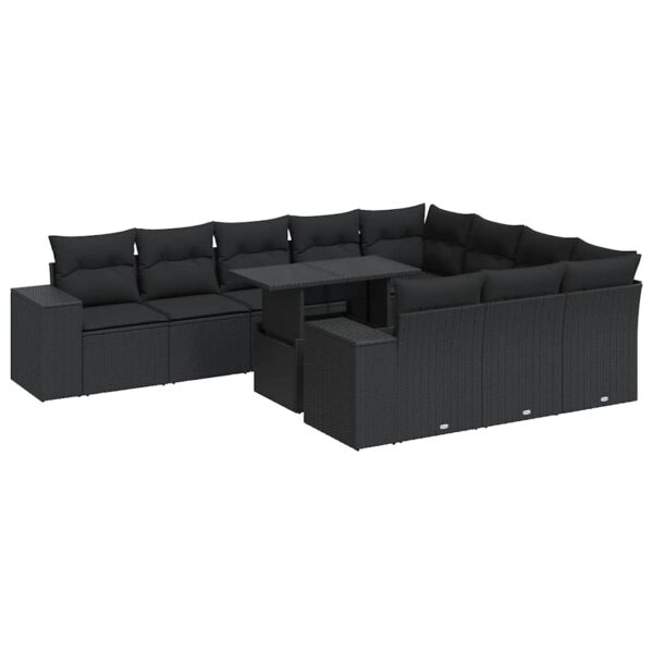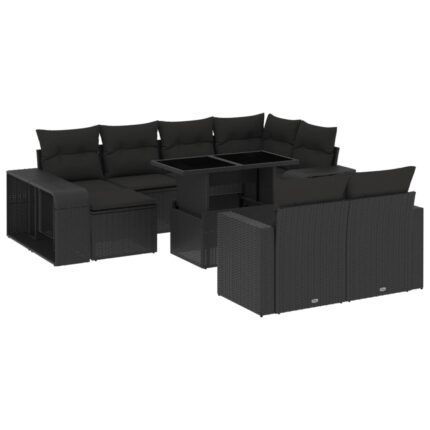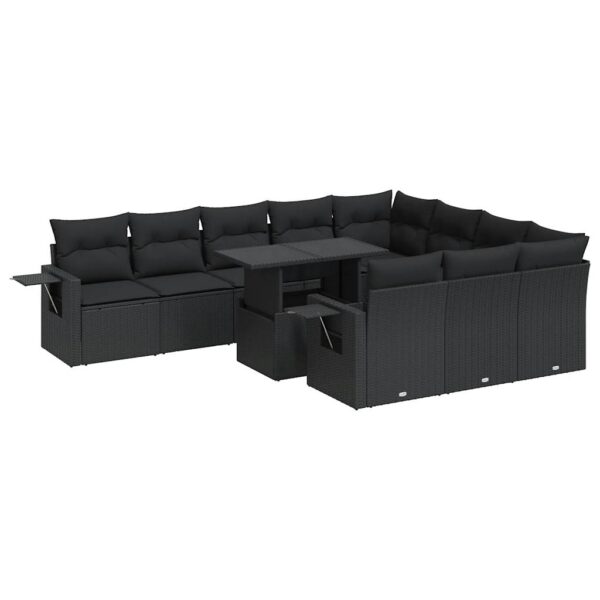 11-tlg. Garten-Sofagarnitur mit Kissen Schwarz Poly Rattan