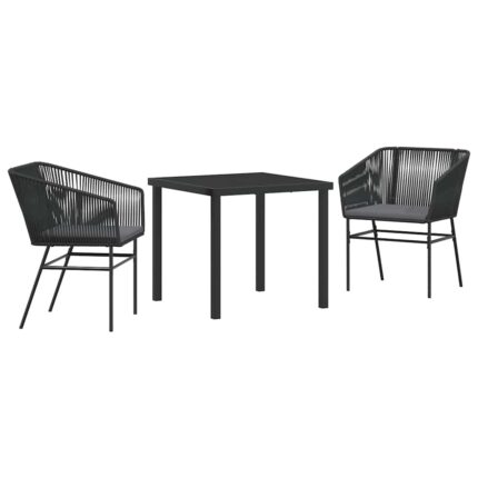 Garten Essgruppe mit Kissen 3 pcs Schwarz Poly-Rattan