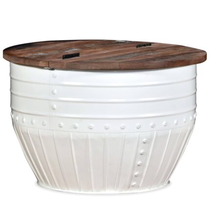 Dieser Couchtisch aus Holz im industriellen Stil versprüht Vintage-Charme und ist eine zeitlose Ergänzung für dein Zuhause. Der Tisch kann