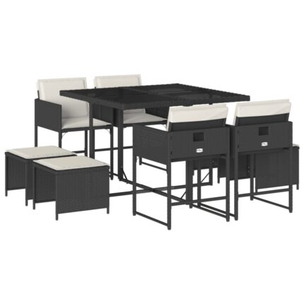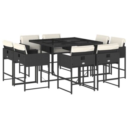 9-tlg. Garten-Essgruppe mit Kissen Schwarz Poly Rattan