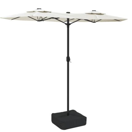 Doppel-Sonnenschirm mit LED-Leuchten Sandweiss 316×145 cm