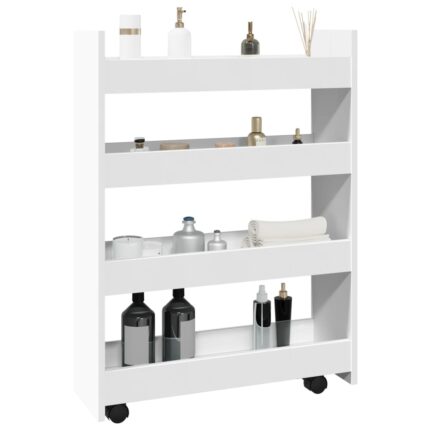 Schmaler Aufbewahrungswagen 4 Etagen Weiss Holzwerkstoff