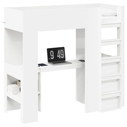Etagenbettgestell mit Schreibtisch Weiss 75 x 190 cm