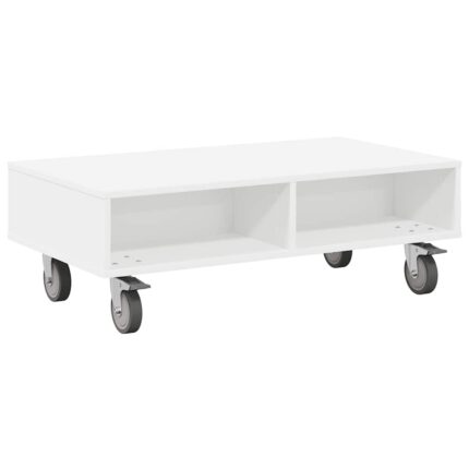Side Table with Wheels Weiss 90 x 50 x 30 cm Holzwerkstoff