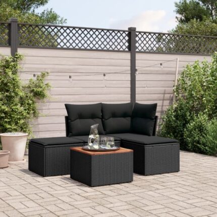 5-tlg. Garten-Sofagarnitur mit Kissen Schwarz Poly Rattan