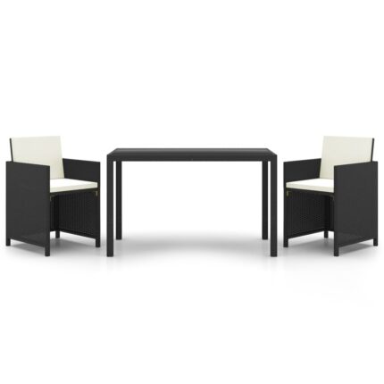 3-tlg. Garten-Essgruppe mit Kissen Poly Rattan Schwarz