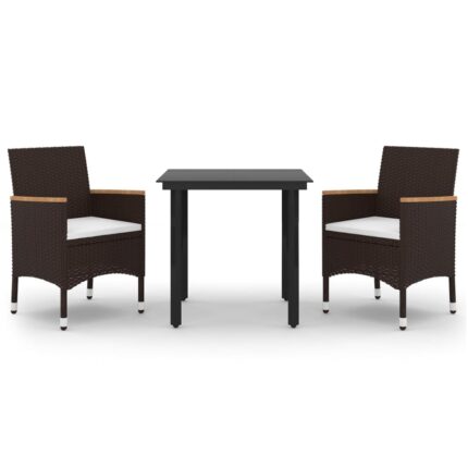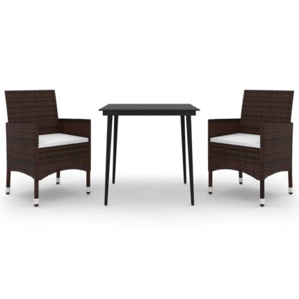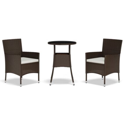 3-tlg. Garten-Bistro-Set mit Kissen Braun Poly Rattan