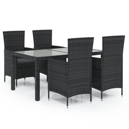 9-tlg. Garten-Essgruppe Poly Rattan Schwarz