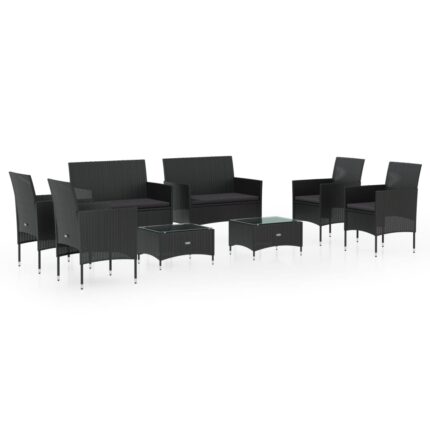 8-tlg. Garten-Lounge-Set mit Auflagen Poly Rattan Schwarz