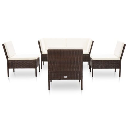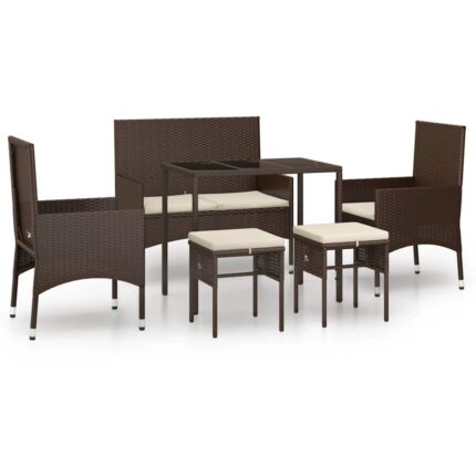 6-tlg. Garten-Lounge-Set mit Auflagen Poly Rattan Braun