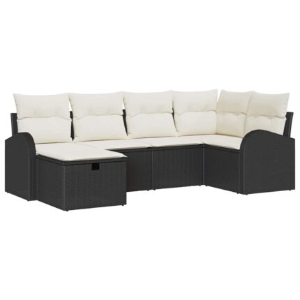 Sofa Set mit Kissen mit Speicher 7 pcs Schwarz Poly-Rattan