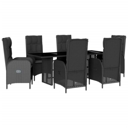 7-tlg. Garten-Essgruppe mit Kissen Schwarz Poly Rattan