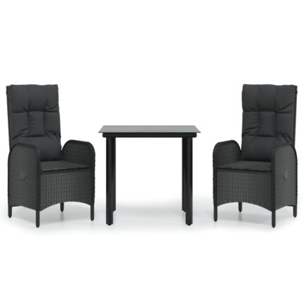 3-tlg. Garten-Essgruppe mit Kissen Schwarz Poly Rattan