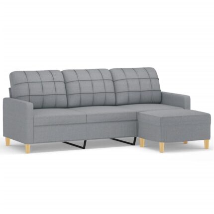 3-Sitzer-Sofa mit Hocker Hellgrau 180 cm Stoff