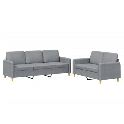 2-tlg. Sofagarnitur mit Kissen Hellgrau Stoff
