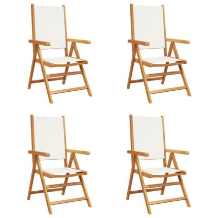 Gartenstuhl Verstellbar 4 Stk. Cremeweiss Stoff und Massivholz