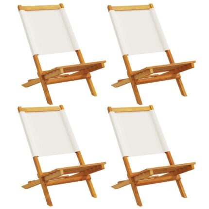Gartenstühle 4 Stk. Klappbar Cremeweiss Stoff und Massivholz