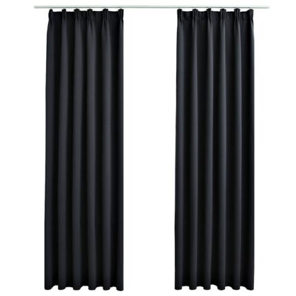 Verdunkelungsvorhänge mit Haken 2 Stk. Schwarz 140x175cm