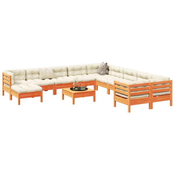 12-tlg. Garten-Sofagarnitur mit Kissen Wachsbraun Kiefernholz