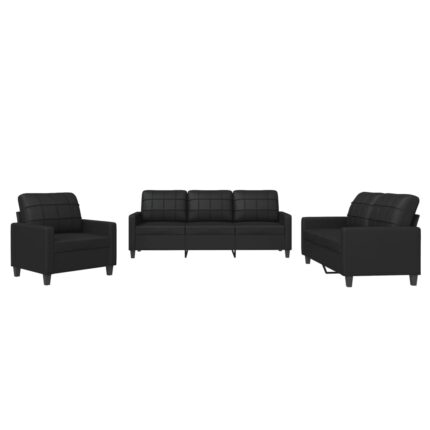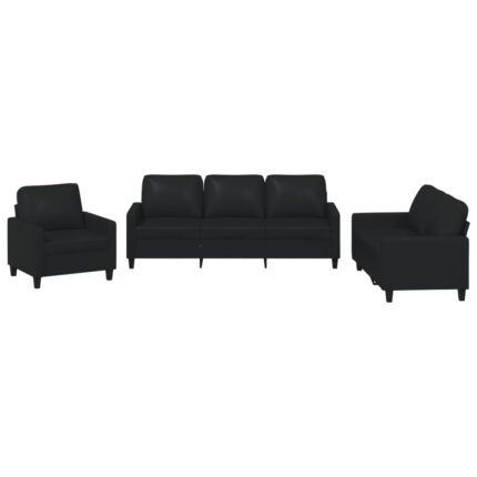 3-tlg. Sofagarnitur mit Kissen Schwarz Kunstleder