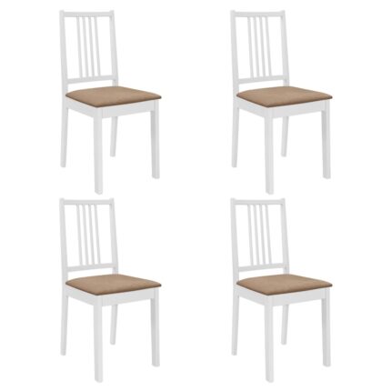 Esszimmerstühle mit Polstern 4 Stk. Weiss Massivholz