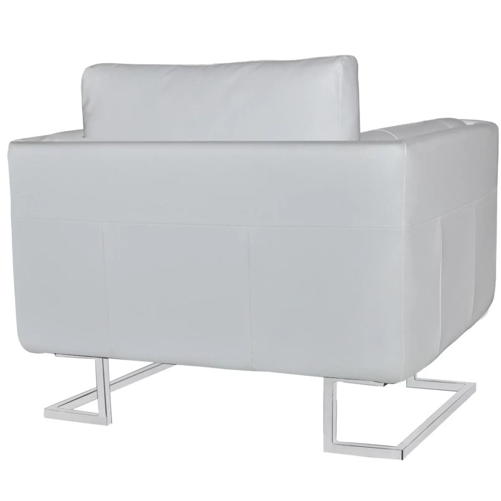 Mit seinem modernen und zeitlosen Design ist dieser wunderschöne Sessel überall ein Blickfänger. Mit einem haltbaren Holzgestell versehen und mit Leder-Mischgewebe bezogen, das zu 19 % Echtleder enthält, ist der Würfel-Sessel nicht nur robust und komfortabel, sondern auch auf eine jahrelange Lebensdauer ausgelegt. Der Sessel ist mit hochwertigem Mischgewebe bezogen, das zu 19 % Leder enthält und sich sehr angenehmen und weich anfühlt. Die robusten, verchromten Beine sorgen für zusätzliche Stabilität. Durch die bequemen Armlehnen, das mitgelieferte Kissen und das ergonomische Design bietet er optimalen Sitzkomfort Dieser stilvolle Sessel stellt auch ein ansprechendes Deko-Element in jedem Wohnzimmer oder Büro dar. Er bringt einen Hauch schlichter Eleganz in jeden Raum.