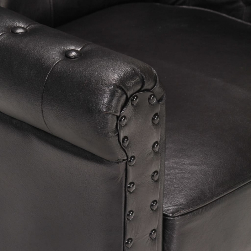Schaffen Sie eine warme Vintage-Atmosphäre in Ihrem Wohnraum mit diesem wunderschönen Sessel. Dieser Stuhl ist mit strapazierfähigem echtem Ziegenleder bezogen und bietet ein hervorragendes Sitzgefühl. Das Sofa wird von massiven Mangoholzbeinen getragen, wodurch es stabil und robust ist.
