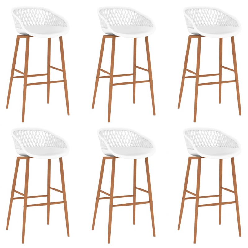 Dieses Bar-Set mit modernem und zeitgemäßem Design passt perfekt zu modernen Interieurs, Gärten, Bars, Pubs oder Restaurants. Das saubere und zeitgemäße Design passt zu jeder Inneneinrichtung. Dieser Thekentisch verfügt über eine robuste MDF-Tischplatte und starke Metallbeine in Holzoptik. Die Barhocker haben einen ergonomisch gestalteten Sitz mit integrierter niedriger Rückenlehne in Netz-Optik. Diese Thekenstühle sind aus robustem PP gefertigt und werden von starken Metallbeinen mit Thermotransferdruck in Holzoptik getragen. Die Tresenstühle sind robust und langlebig.