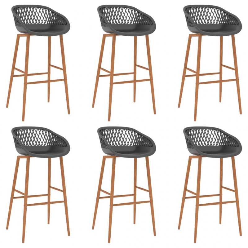 Dieses Bar-Set mit modernem und zeitgemäßem Design passt perfekt zu modernen Interieurs, Gärten, Bars, Pubs oder Restaurants. Das saubere und zeitgemäße Design passt zu jeder Inneneinrichtung. Dieser Thekentisch verfügt über eine robuste MDF-Tischplatte und starke Metallbeine in Holzoptik. Die Barhocker haben einen ergonomisch gestalteten Sitz mit integrierter niedriger Rückenlehne in Netz-Optik. Diese Thekenstühle sind aus robustem PP gefertigt und werden von starken Metallbeinen mit Thermotransferdruck in Holzoptik getragen. Die Tresenstühle sind robust und langlebig.