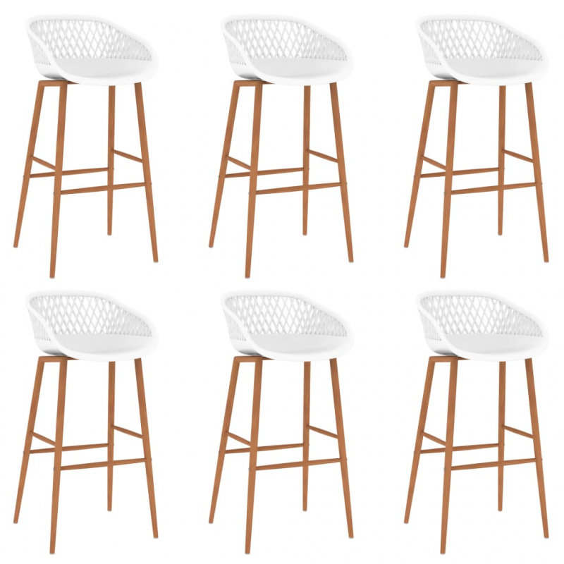 Dieses Bar-Set mit modernem und zeitgemäßem Design passt perfekt zu modernen Interieurs, Gärten, Bars, Pubs oder Restaurants. Das saubere und zeitgemäße Design passt zu jeder Inneneinrichtung. Dieser Thekentisch verfügt über eine robuste MDF-Tischplatte und starke Metallbeine in Holzoptik. Die Barhocker haben einen ergonomisch gestalteten Sitz mit integrierter niedriger Rückenlehne in Netz-Optik. Diese Thekenstühle sind aus robustem PP gefertigt und werden von starken Metallbeinen mit Thermotransferdruck in Holzoptik getragen. Die Tresenstühle sind robust und langlebig.