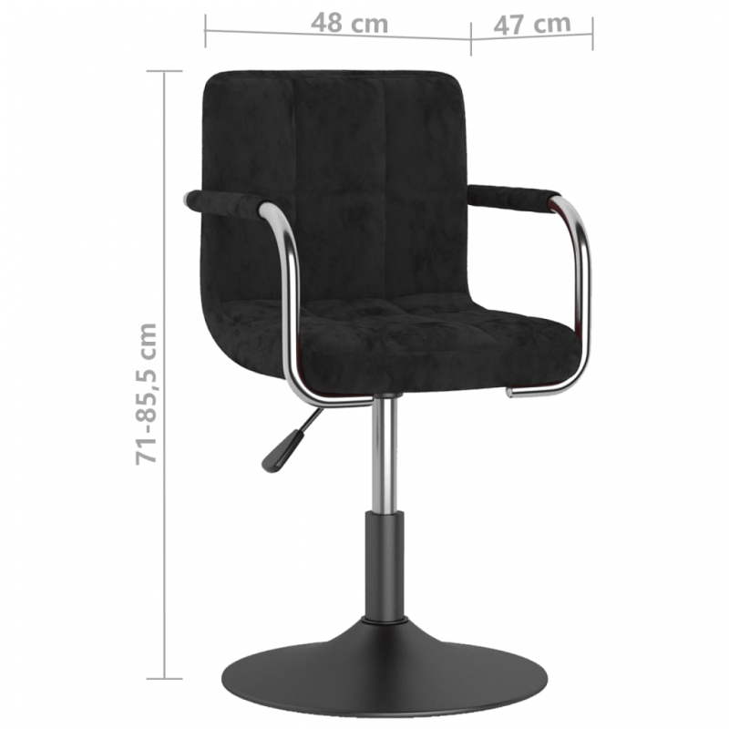 Mit seinem eleganten und dennoch zeitlosen Design bietet Ihnen dieser Esszimmerstuhl höchsten Sitzkomfort. Der Küchenstuhl ist mit weichem Samt bezogen und bietet optimalen Komfort. Das pulverbeschichtete Stahlgestell sorgt für hohe Stabilität und Robustheit. Dank der Gasdruckfeder lässt sich der drehbare Esszimmerstuhl in der Höhe verstellen und ist eine perfekte Ergänzung zu jeder Küchentheke oder jedem anderen Essbereich. Darüber hinaus lässt er sich um 360 Grad drehen und bietet dadurch eine hohe Flexibilität.