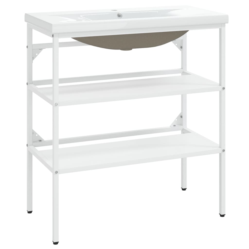 Badezimmer-Waschtischgestell mit Waschbecken Weiß Eisen