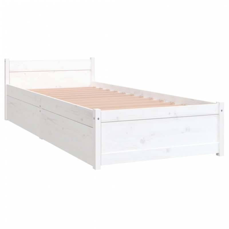 Mit seinem schlichten und zeitlosen Design ist dieses Holzbettgestell eine praktische und dekorative Ergänzung zu deinem Schlafzimmer. Massives Kiefernholz: Massives Kiefernholz ist ein wunderschönes Naturmaterial. Kiefernholz weist eine gerade Maserung auf und die Aststellen verleihen dem Material seine charakteristische, rustikale Optik.Robuste Latten: Die Sperrholzlatten sorgen für eine gute Gewichtsverteilung und auch dafür, dass die Matratze bei jeder Bewegung Ihres Körpers während des Schlafes an Ort und Stelle bleibt.Stauraum: Die mitgelieferten Bettschubladen bietet reichlich Stauraum zur Aufbewahrung wichtiger Sachen, um für Ordnung in Ihrem Zimmer zu sorgen. Hinweis:Die Lieferung umfasst nur einen Bettrahmen. Die Matratze ist nicht inbegriffen. In unserem Shop finden Sie auch passende Matratzen.Dieser Bettrahmen ist für eine Matratze mit den Maßen 75 x 190 cm (2FT6 Small Single) geeignet.