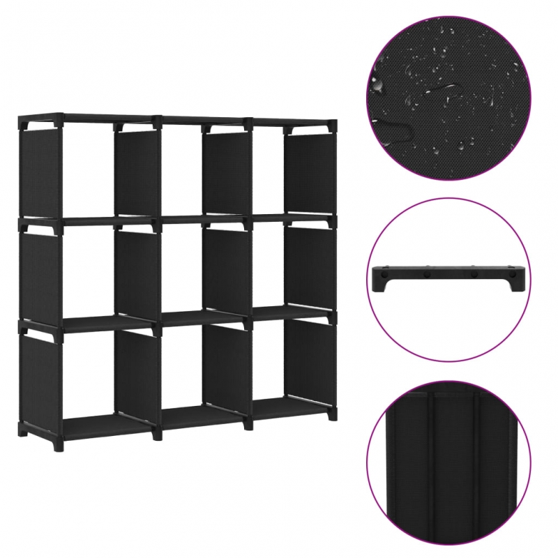 Würfelregal mit 9 Fächern Schwarz 103x30x107,5 cm Stoff