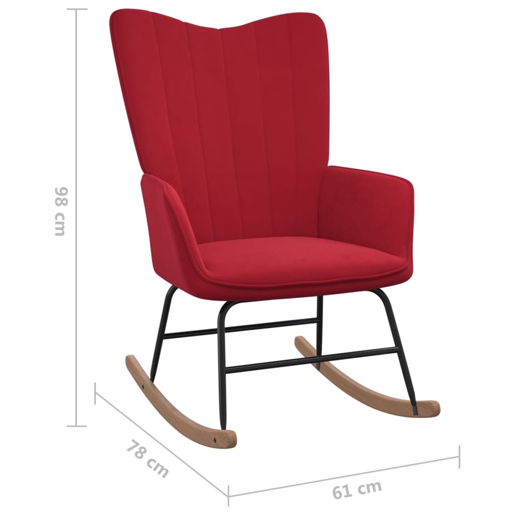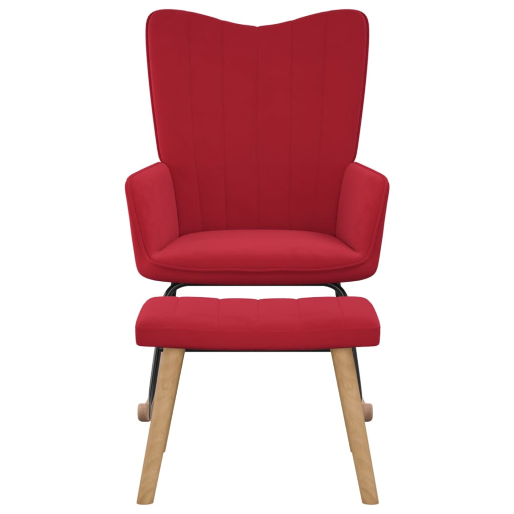 Dieser Schaukelsessel mit Fußhocker ist eine hervorragende Ergänzung zu deiner Inneneinrichtung. Dieser Armlehnstuhl mit vertikalen Nähten an der Rückenlehne ist ästhetisch ansprechend. Dank der bequemen Schaumstoff-Polsterung und des weichen Bezug aus Samt genießt du optimalen Komfort beim Sitzen. Dank der langen Schaukelkufen wird der Relaxsessel nicht so leicht umkippen. Darüber hinaus ist der Wohnzimmerstuhl mit Hocker stabil und langlebig, da er von einem Rahmen und Beinen aus Stahl sowie Schaukelkufen aus Holz getragen wird.