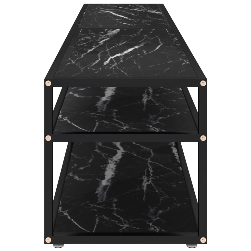 Dieses TV-Möbel wird mit seinem schlanken und modernen Design eine praktische Ergänzung zu deinem Wohnzimmer sein. Der TV-Tisch ist aus gehärtetem Glas gefertigt, wodurch er sehr robust und stabil ist. Außerdem lässt sich dieses moderne Möbelstück leicht mit einem feuchten Tuch reinigen. Der Rahmen aus pulverbeschichtetem Stahl trägt zu seiner Robustheit und einzigartiger Optik bei. Die Ablage unter der Tischplatte bietet reichlich Platz, um DVDs, Bücher und andere wichtige Kleinigkeiten geordnet und griffbereit aufzubewahren.