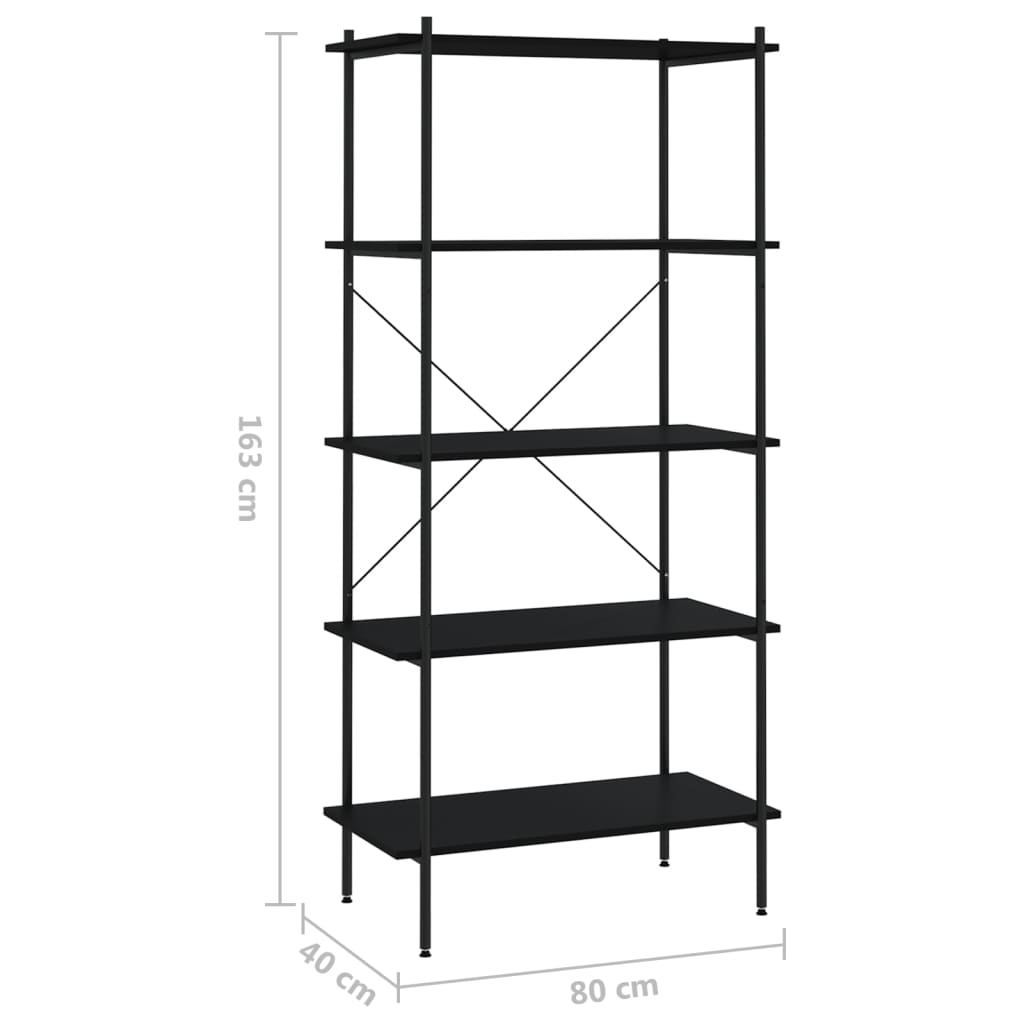 Regal mit 5 Böden Schwarz 80x40x163 cm
